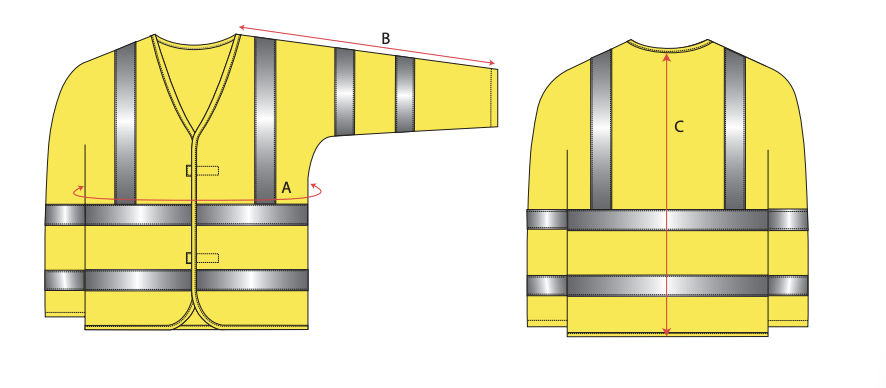 EN ISO 20471 Klasse 2: Diese Regelung bezieht sich auf hohe Sichtbekleidung. Zeigt an, dass das Kleidungsstück den Sichtanforderungen für hohe Sichtschutzkleidung entspricht.