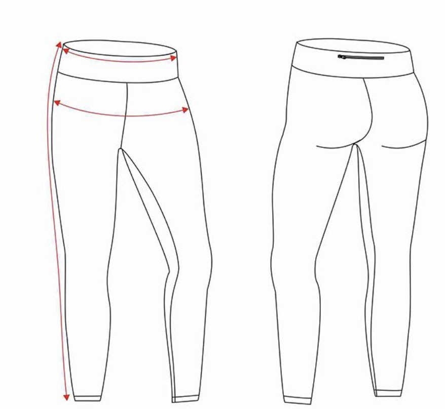 Elastische Leggings, kombinierter Innenstoff an der Taille, hintere Tasche mit Reißverschluss.