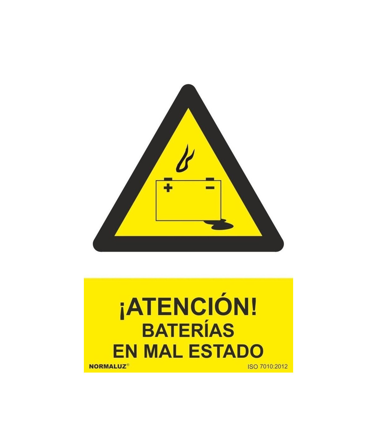 ¡Atención! Baterías en mal estado, señal de advertenciA SEKURECO, con tintas UV