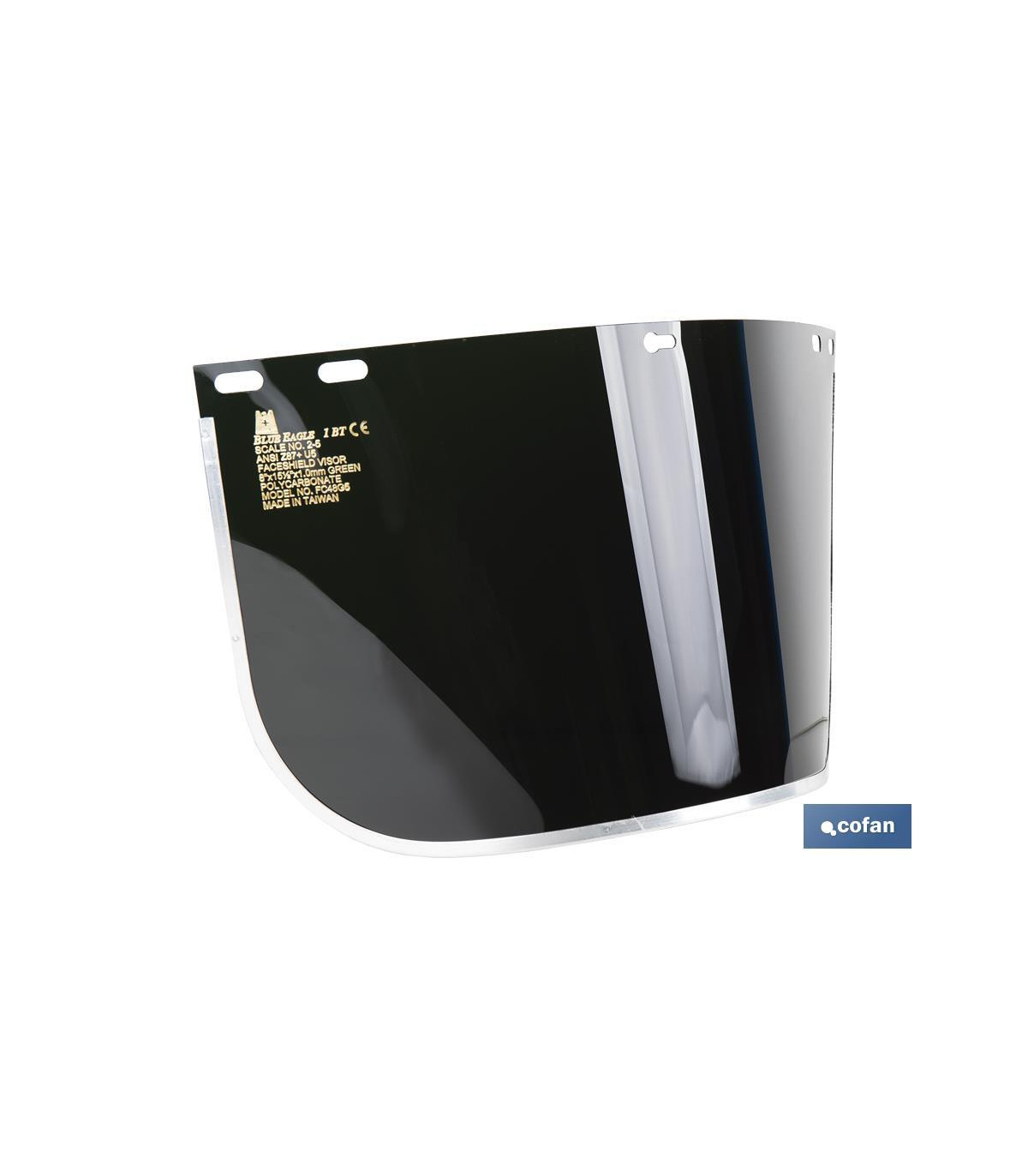 Remplacement de l'écran de protection de la lentille sombre de 400 mm avec le COFAN 11000195 EN166. Pièce de rechange pour l'écran de protection avec cristal sombre. Les écrans de protection du visage sont conçus pour protéger la face de l'individu de tout contact ou des éclaboussures. Ce remplacement universel peut être adapté à n'importe quel écran de protection et peut être utilisé à nouveau une fois qu'il a été nettoyé avec de l'eau ou du désinfectant. Grâce à sa conception, il est très facile à assembler sur l'écran de protection. Il possède un système anti-Vivah qui offre une meilleure vision.