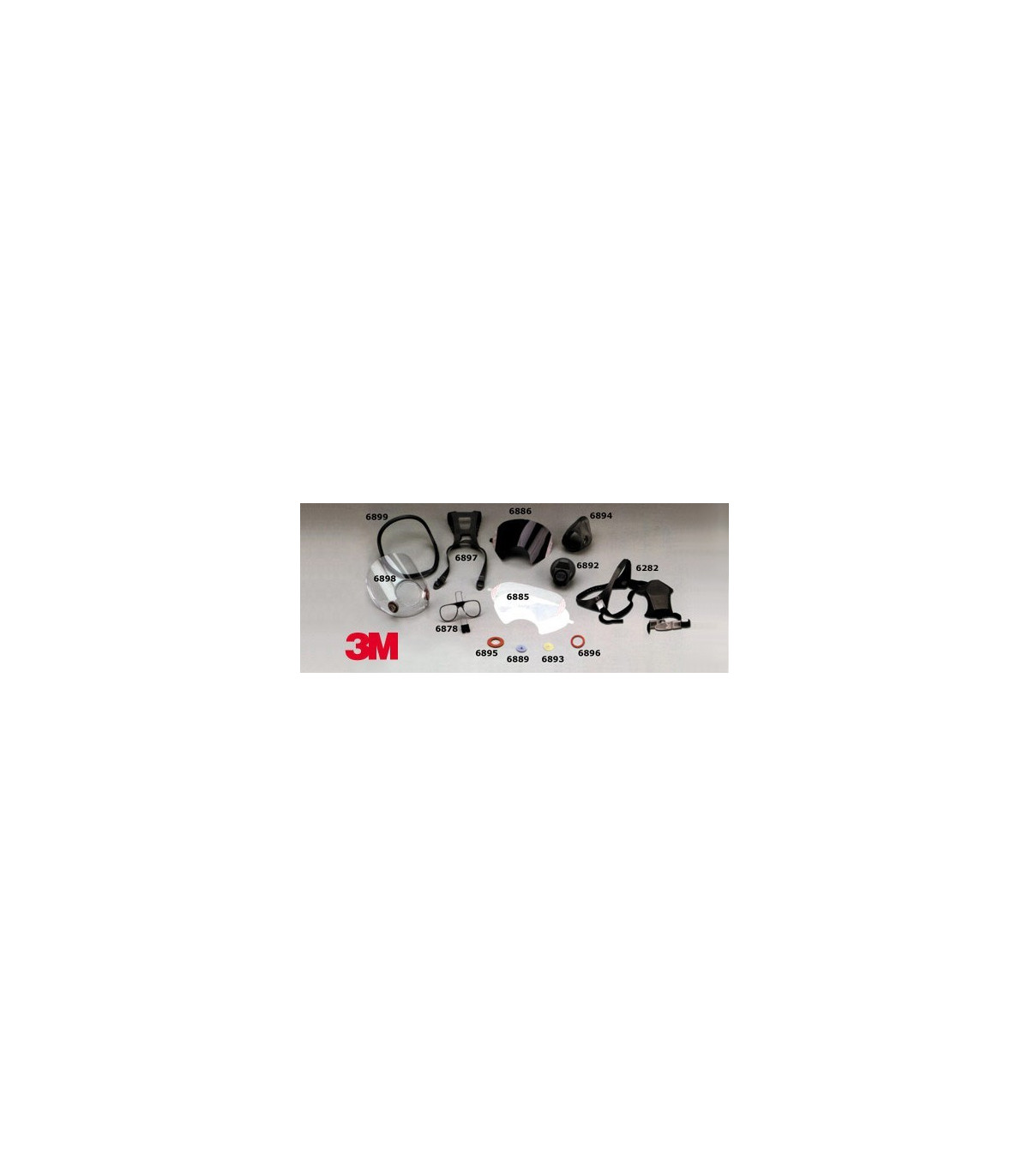 Pièces de rechange : Coupe nasale, Lentille de visière, Valve d'exhalation, Harnais, Assemblage de l'adaptateur central, Valve d'inhalation, Cadre de lentille, Acétates protecteurs, Assemblage de lentilles formulées.