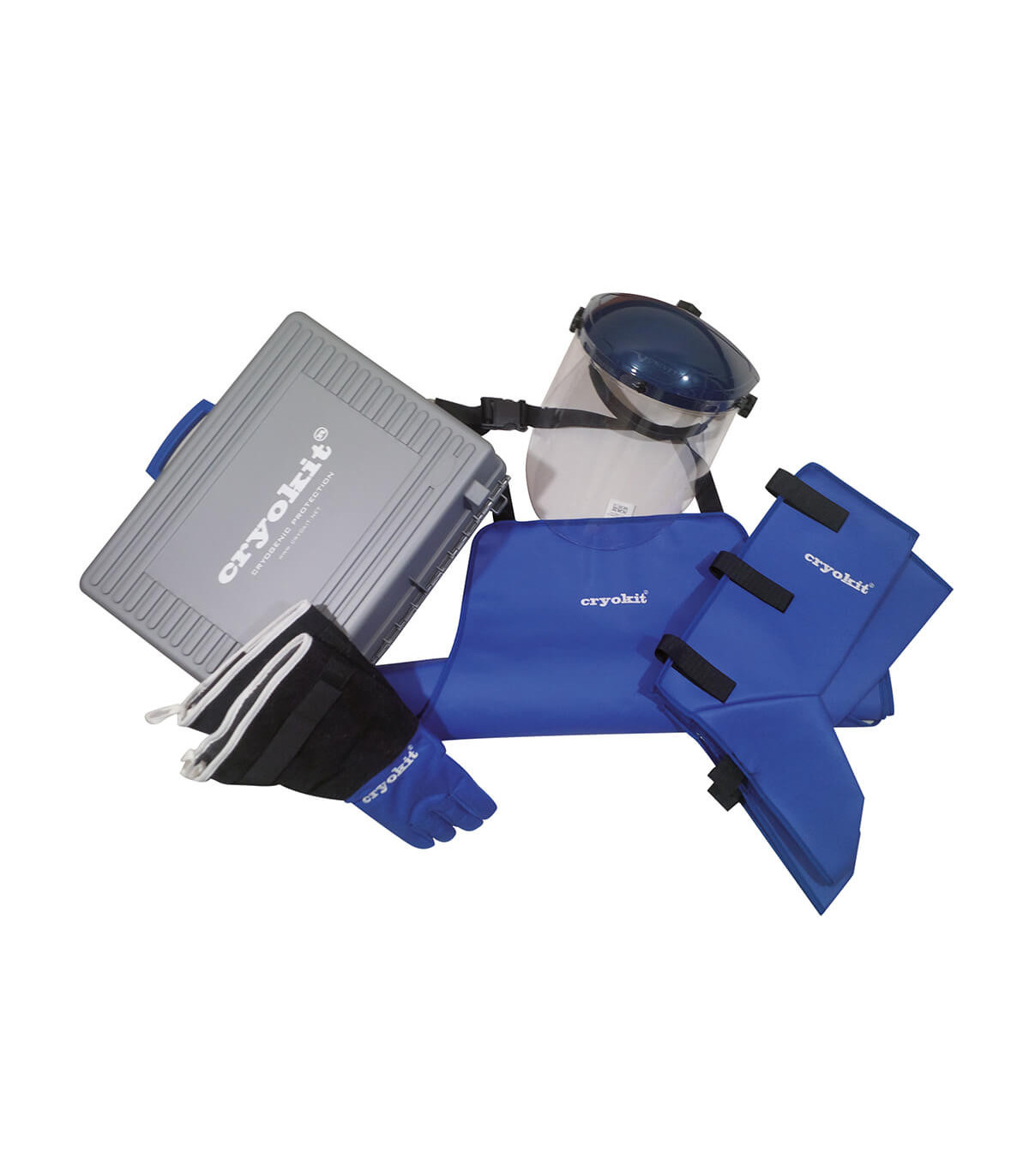 Special kit for working with liquid nitrogen. Includes face screen, apron, gloves and polishes. The screen is CLASE A high energy impact. Visor 395x240 mm. Dieelectric. Protection against liquid gas splashes. UV protection, against molten metal and electrical risk. Resistant at high temperatures. Valid for long periods of use. It is served in easy to store transport case. Parts can be purchased separately.