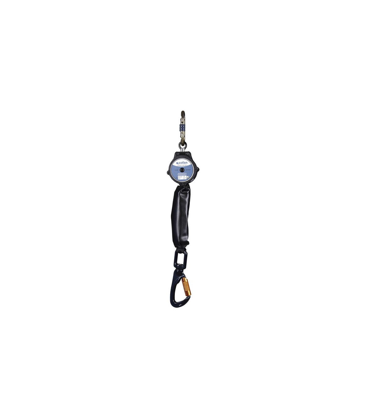 Camera di caduta a retrattile con assorbitore di energia con filo di 2 metri sotto il 150 kg del cofan massimo 11000371. Anti-esente da retrattile con cavo da 2 m. Ha un rivestimento in polimero ad alta resistenza con cavo in acciaio zincato Ø4,5 mm. Sistema di frenatura con forza d'impatto inferiore a 6 kn. Include un assorbitore di energia. Tenere il massimo di 140 kg massimi.