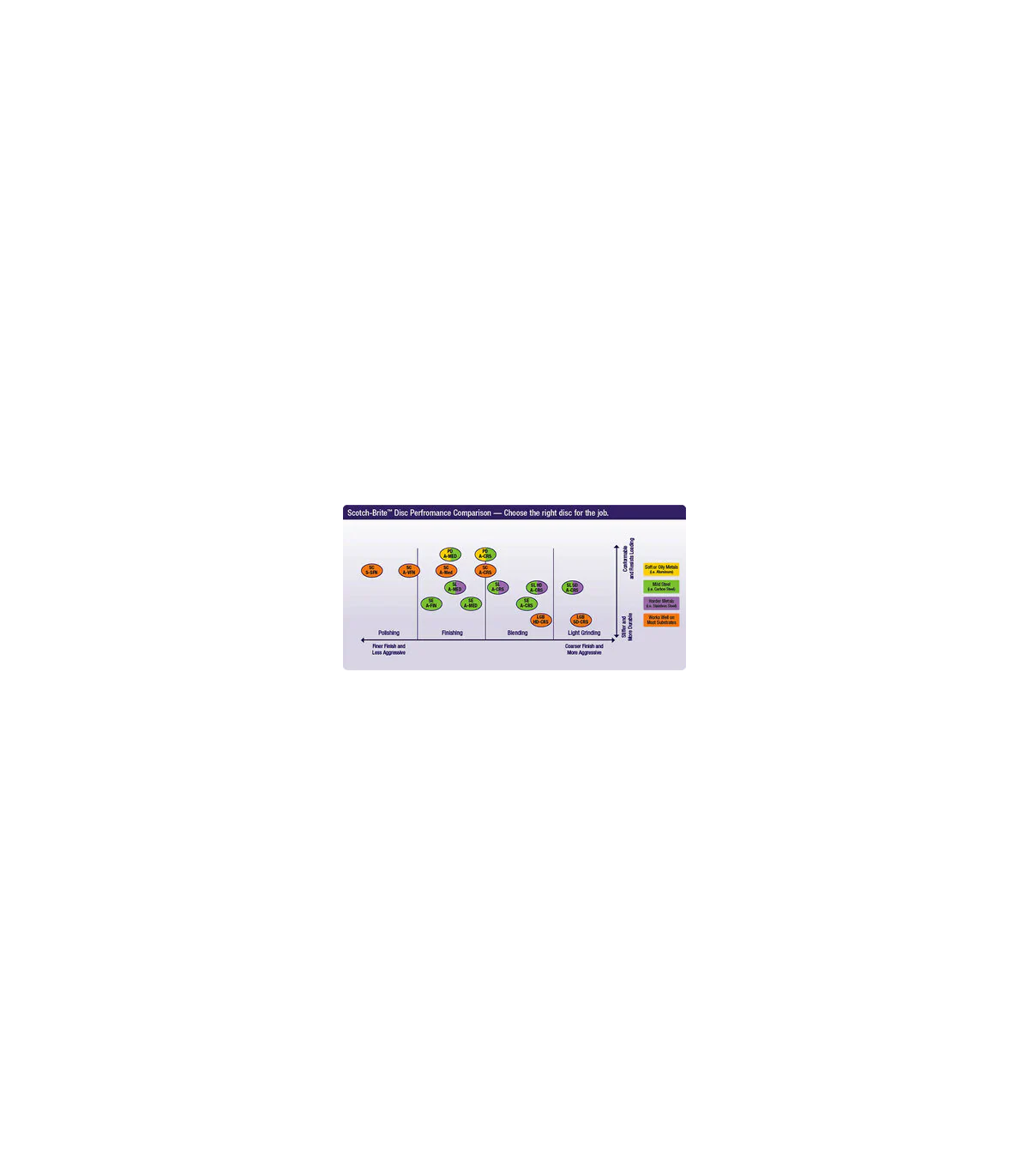 Os produtos Scotch-BriteTM para condicionamento de superfície incorporam abrasivos em fibras de nylon sintéticas ou não tecidas. A combinação de abrasivos e fibras cria um sistema abrasivo que proporciona até resultados ao longo da vida útil do produto. As fibras são resistentes à emboscada e preservam o alto desempenho de corte de minerais abrasivos limitando a obstrução das fibras, o que também prolonga a vida útil do disco. Discos 3M Roloc TR Rápido Mudança são discos menores que têm um parafuso ou plástico roscado botão projetado para rapidamente e facilmente encadeá-los a uma bobina de disco Roloc TR* para que o disco pode ser alterado confortavelmente com uma ação simples descolamento e rosqueamento. O sistema Roloc TR permite que você proteja discos mesmo em aplicações intensas. Além disso, a faixa de disco 3M Roloc disponível permite que você se mova de um aplicativo para o próximo em segundos.