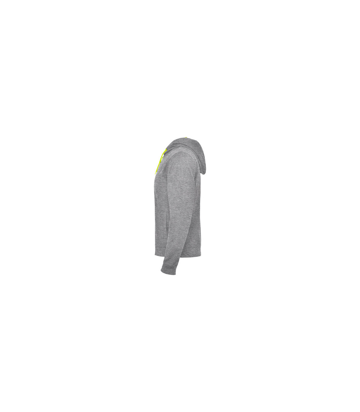 Jaqueta de pelúcia não empoleirada com os detalhes do fluor fuji. Com um zíper central com flúor e capô contrastando com um revestimento interior no tecido de poliéster microperado em contraste, com fios e ilhós metálicos em contraste de flúor.